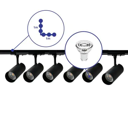 | Nom du fabricant | Complete L shaped 1-Phase Track Set Black incl. 6x Spot fixture + GU10 2700K 3W Dim – 1 x 1 meter i | |