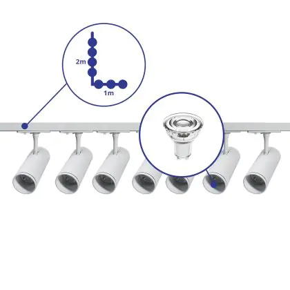 | Nom du fabricant | Complete L shaped 1-Phase Track Set White incl. 7x Spot fixture + GU10 2700K 3W Dim – 1 x 2 meter i | |