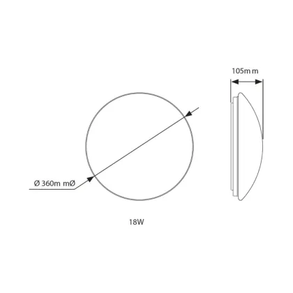 Description Hublot LED Blanc 18W 1561lm - 840 | 360mm - IP44 - Éclairage de secours 1 heures