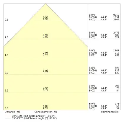 Le rapport lumen/watt (lm/W) indique l'efficacité avec laquelle une source lumineuse convertit l'énergie en lumière. Pour cela, on divise le nombre de lumens par le wattage. Plus le chiffre est élevé, plus le produit est efficace en termes de consommation d'énergie. L'éclairage LED présente un rapport lumen/watt nettement supérieur à celui de l'éclairage classique.                                             | Efficacité Lumineuse (Lm/W) | 120 |