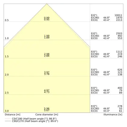 Le rapport lumen/watt (lm/W) indique l'efficacité avec laquelle une source lumineuse convertit l'énergie en lumière. Pour cela, on divise le nombre de lumens par le wattage. Plus le chiffre est élevé, plus le produit est efficace en termes de consommation d'énergie. L'éclairage LED présente un rapport lumen/watt nettement supérieur à celui de l'éclairage classique.                                             | Efficacité Lumineuse (Lm/W) | 126 |