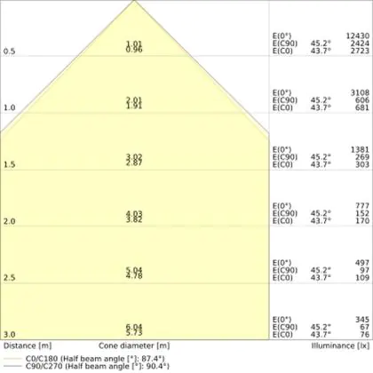 Le rapport lumen/watt (lm/W) indique l'efficacité avec laquelle une source lumineuse convertit l'énergie en lumière. Pour cela, on divise le nombre de lumens par le wattage. Plus le chiffre est élevé, plus le produit est efficace en termes de consommation d'énergie. L'éclairage LED présente un rapport lumen/watt nettement supérieur à celui de l'éclairage classique.                                             | Efficacité Lumineuse (Lm/W) | 123 |