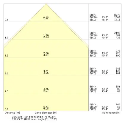 Le rapport lumen/watt (lm/W) indique l'efficacité avec laquelle une source lumineuse convertit l'énergie en lumière. Pour cela, on divise le nombre de lumens par le wattage. Plus le chiffre est élevé, plus le produit est efficace en termes de consommation d'énergie. L'éclairage LED présente un rapport lumen/watt nettement supérieur à celui de l'éclairage classique.                                             | Efficacité Lumineuse (Lm/W) | 129 |