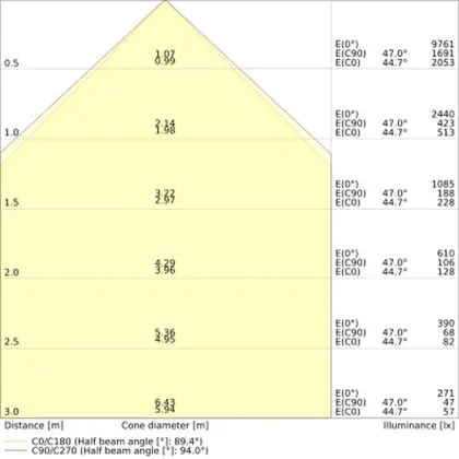 Le rapport lumen/watt (lm/W) indique l'efficacité avec laquelle une source lumineuse convertit l'énergie en lumière. Pour cela, on divise le nombre de lumens par le wattage. Plus le chiffre est élevé, plus le produit est efficace en termes de consommation d'énergie. L'éclairage LED présente un rapport lumen/watt nettement supérieur à celui de l'éclairage classique.                                             | Efficacité Lumineuse (Lm/W) | 121 |