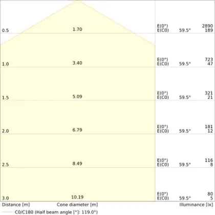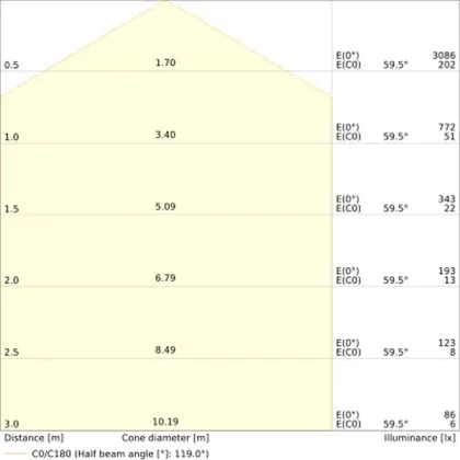 Le code couleur se compose de l'indice de rendu des couleurs (IRC) et de la température de couleur (Kelvin). Le premier chiffre indique le rendu des couleurs (1 = très mauvais rendu des couleurs, 9 = meilleure authenticité des couleurs). Le deuxième et troisième chiffre indiquent la température de la couleur. Exemple : Le code couleur "830" indique que la lampe a un bon rendu des couleurs (8) et une couleur de lumière blanche chaude (30 = 3000K). |