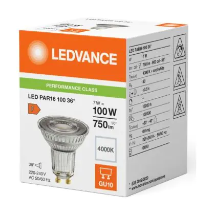 Ledvance LED PAR16 GU10 Réflecteur 7W 750lm 36D - 840 | Remplacement 80W