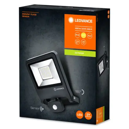 Le Ledvance Projecteur LED Endura Noir 50W 4500lm 100D - 830 | IP44 - Détecteur de mouvement et de lumière - Symétrique permet une économie d’énergie importante tout en conservant une excellente qualité d’éclairage. Sa technologie LED Intégré lui permet également d’avoir une très longue durée de vie pouvant aller jusqu’à heures. Ce projecteur LED est étanche, avec son indice de protection IP44 lui permettant d’être hermétique à la poussière et à l’eau. Disponible dans la couleur 3000K - Blanc Chaud et un flux lumineux de 4500 Lm, ce projecteur LED est la solution idéale pour le remplacement de vos anciens projecteurs conventionnels.