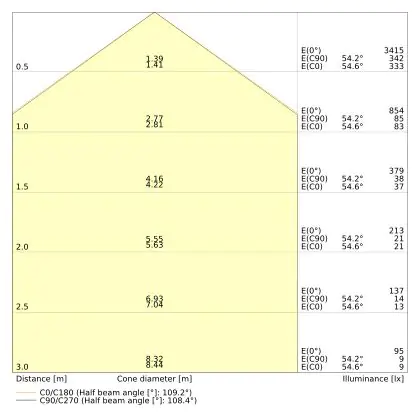 Le code couleur se compose de l'indice de rendu des couleurs (IRC) et de la température de couleur (Kelvin). Le premier chiffre indique le rendu des couleurs (1 = très mauvais rendu des couleurs, 9 = meilleure authenticité des couleurs). Le deuxième et troisième chiffre indiquent la température de la couleur. Exemple : Le code couleur "830" indique que la lampe a un bon rendu des couleurs (8) et une couleur de lumière blanche chaude (30 = 3000K).