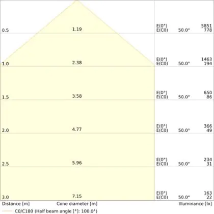 - Angle de diffusion: 100 °