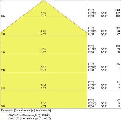 Un angle de diffusion est également appelé angle de rayonnement et indique l'angle du faisceau lumineux provenant d'une source lumineuse. Plus l'angle de diffusion en degrés (D) est petit, plus le faisceau est étroit. Vous voulez en savoir plus? Alors lisez notre blog.                                             | Angle de Diffusion (degrés) | 120 |