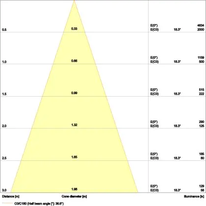 Un angle de diffusion est également appelé angle de rayonnement et indique l'angle du faisceau lumineux provenant d'une source lumineuse. Plus l'angle de diffusion en degrés (D) est petit, plus le faisceau est étroit. Vous voulez en savoir plus? Alors lisez notre blog.
