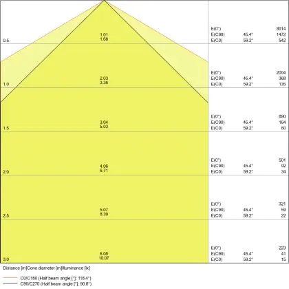 Le code couleur se compose de l'indice de rendu des couleurs (IRC) et de la température de couleur (Kelvin). Le premier chiffre indique le rendu des couleurs (1 = très mauvais rendu des couleurs, 9 = meilleure authenticité des couleurs). Le deuxième et troisième chiffre indiquent la température de la couleur. Exemple : Le code couleur "830" indique que la lampe a un bon rendu des couleurs (8) et une couleur de lumière blanche chaude (30 = 3000K). |