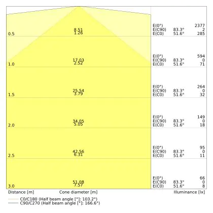 Le rapport lumen/watt (lm/W) indique l'efficacité avec laquelle une source lumineuse convertit l'énergie en lumière. Pour cela, on divise le nombre de lumens par le wattage. Plus le chiffre est élevé, plus le produit est efficace en termes de consommation d'énergie. L'éclairage LED présente un rapport lumen/watt nettement supérieur à celui de l'éclairage classique.                                             | Efficacité Lumineuse (Lm/W) | 116 |