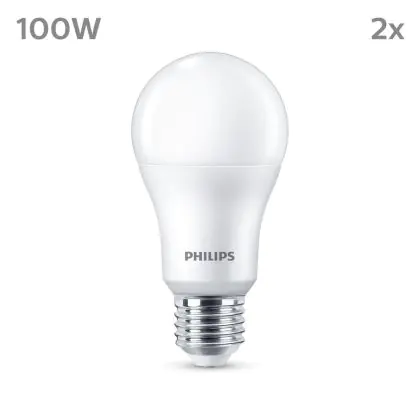 Description Lot 2x Philips Ampoule LED E27 Poire Dépolie 13W 1521lm - 840