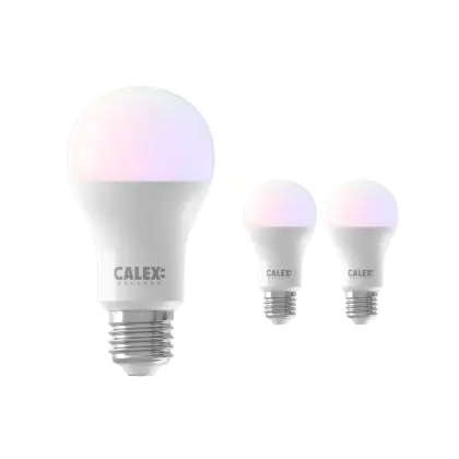 Description Lot 3x Calex Smart Tuya Wifi E27 Poire 8.5W 806lm - 822-840 Accordable Blanc | RGBW - Dimmable - Remplacement 60W