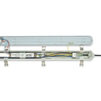 La réglette LED, Lot 4x Philips Réglette LED Étanche Ledinaire WT065C 30/53W 4100/6800lm - 840 | 150cm est conçue pour remplacer les réglettes TL-D traditionnelles et permettant d’économiser jusqu’à 50% d’énergie. Très souvent utilisé pour l’éclairage d’entrepôts, d’usines, de parking et d’autres grands espaces extérieurs. Très simple d’installation, cette réglette de 150cm peut se fixer au plafond et au mur et projette 4000K - Blanc Froid, comme couleur de lumière. La Lot 4x Philips Réglette LED Étanche Ledinaire WT065C 30/53W 4100/6800lm - 840 | 150cm dispose d’un indice de protection IP65 à l’eau et la poussière et d’une résistance aux chocs IK08.
