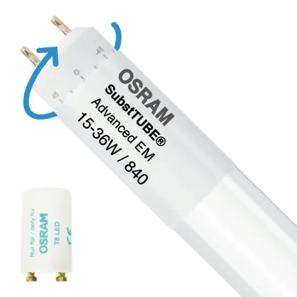 Vous avez besoin d'un starter LED si l'éclairage fluorescent de votre luminaire actuel contient également un starter. Dans ce cas, il s'agit d'un luminaire avec un ballast conventionnel (EM). Un starter LED remplace votre starter actuel et assure le fonctionnement d'un tube LED.