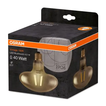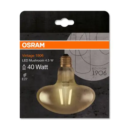 Cette ampoule Osram Vintage 1906 LED E27 Mushroom Filament Dorée 4.5W 470lm - 825 | Remplacement 40W avec son efficacité lumineuse de lumen par watt vous permettra de profiter d’un éclairage de qualité. Avec sa durée de vie de 15000 heures, vous n’aurez pas à vous soucier de son remplacement avant quelques années.