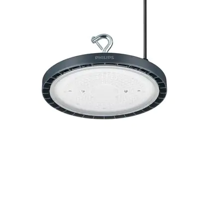 Le Philips Highbay LED BY120P Coreline G5 Aluminium Gris 67W 10500lm 85x85D - 840 Blanc Froid | IP65 est un puissant luminaire qui est très souvent utilisé pour l’éclairage industriel. Ce luminaire suspendu propage un puissant flux lumineux de 10500 Lm et offrant un excellent rendu de couleurs par rapport aux luminaires traditionnels. Cet high-bay LED est capable de résister aux différentes températures extrêmes que l’on peut retrouver dans les hangars, entrepôts ou autres halls industriels. La technologie LED Intégré sur ce luminaire permet de faire d’importantes économies d’énergie. En effet, l’high-bay propose une puissance de 67W pour un équivalent de W pour les appareils classiques et dispose d’une durée de vie pouvant aller jusqu’à 75000 heures.