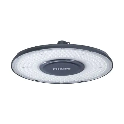 Le Philips Highbay LED CoreLine Aluminium Gris 51W 10000lm 55D - 840 Blanc Froid |IP66 est un puissant luminaire qui est très souvent utilisé pour l’éclairage industriel. Ce luminaire suspendu propage un puissant flux lumineux de 10000 Lm et offrant un excellent rendu de couleurs par rapport aux luminaires traditionnels. Cet high-bay LED est capable de résister aux différentes températures extrêmes que l’on peut retrouver dans les hangars, entrepôts ou autres halls industriels. La technologie LED Intégré sur ce luminaire permet de faire d’importantes économies d’énergie. En effet, l’high-bay propose une puissance de 51W pour un équivalent de 250W pour les appareils classiques et dispose d’une durée de vie pouvant aller jusqu’à 100000 heures.