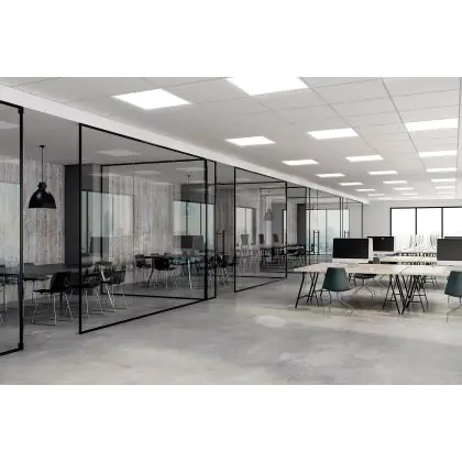 Les dimensions les plus courantes des panneaux LED sont 60x60cm (carrés) et 30x120cm (rectangulaires). Ce sont des tailles standard pour presque tous les plafonds/ des plafonds à grille. D'autres dimensions sont également disponibles, telles que 20x120cm ou 15x150cm.