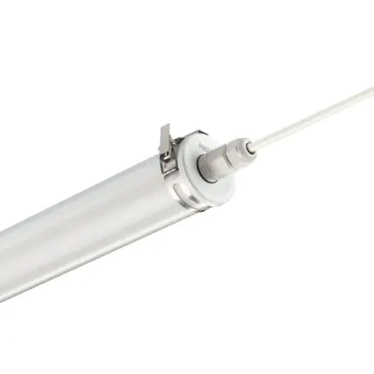 La réglette LED, Philips Réglette LED Étanche CoreLine Tubular WT210C 39W 5000lm - 840 | 120cm est conçue pour remplacer les réglettes TL-D traditionnelles et permettant d’économiser jusqu’à 50% d’énergie. Très souvent utilisé pour l’éclairage d’entrepôts, d’usines, de parking et d’autres grands espaces extérieurs. Très simple d’installation, cette réglette de 120cm peut se fixer au plafond et au mur et projette 4000K - Blanc Froid, comme couleur de lumière. La Philips Réglette LED Étanche CoreLine Tubular WT210C 39W 5000lm - 840 | 120cm dispose d’un indice de protection IP69K à l’eau et la poussière et d’une résistance aux chocs IK06.