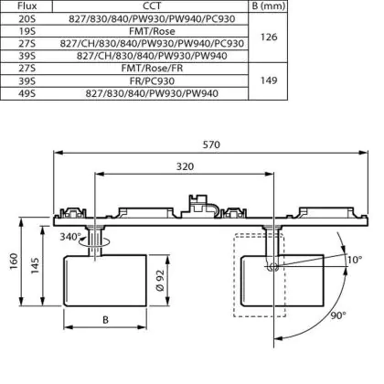 Description Philips Spot LED Sur Rail GreenSpace Evo Projecteur Blanc 39.8W 5400lm 41x80D - 830