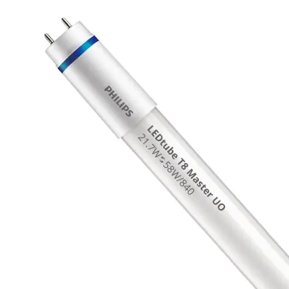 Ce tube LED Philips tube LED 150cm | 4000K 21.7W - Master UO est l’un des produits les plus éconergétiques en remplacement des tubes T8 classiques. Avec ce tube LED vous êtes donc assuré de sa qualité. Avec une puissance de seulement 21.7 W, ce tube LED a la même intensité lumineuse qu’un tube classique qui consomme 58 W.