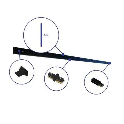 Description Rail Set Rail Monophasé 3 Mètre Noir | incl. Embout, Connecteur d’Alimentation et L-Connecteur