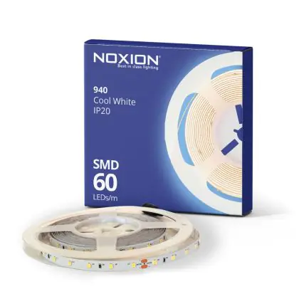 Ce chiffre indique le nombre de points d'éclairage LED par mètre sur le ruban. La règle est la suivante : plus il y a de LED par mètre, plus la lumière/le rendement lumineux est puissant.