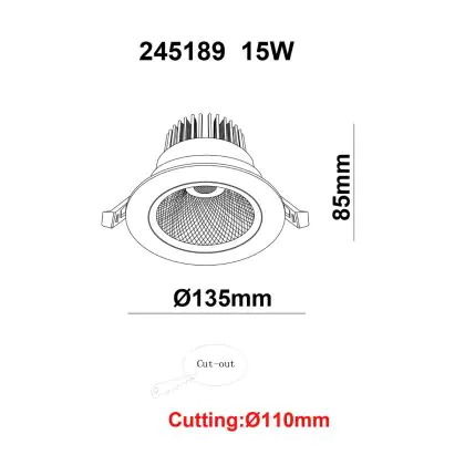 | Nom du fabricant | White label LED Downlight Round Tiltable 15W 1200lm 60D 930 UGR19 CutoutØ110mm FrameØ135mm | |