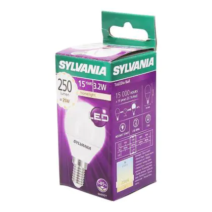 Cette ampoule Sylvania ToLEDo E14 Boule Dépolie 4W 250lm - 827 | Remplacement 25W avec son efficacité lumineuse de lumen par watt vous permettra de profiter d’un éclairage de qualité. Avec sa durée de vie de 25000 heures, vous n’aurez pas à vous soucier de son remplacement avant quelques années.