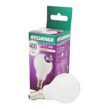 Cette ampoule Sylvania ToLEDo Retro E14 Boule Dépolie 4W 400lm - 827 | Remplacement 40W avec son efficacité lumineuse de lumen par watt vous permettra de profiter d’un éclairage de qualité. Avec sa durée de vie de 10000 heures, vous n’aurez pas à vous soucier de son remplacement avant quelques années.