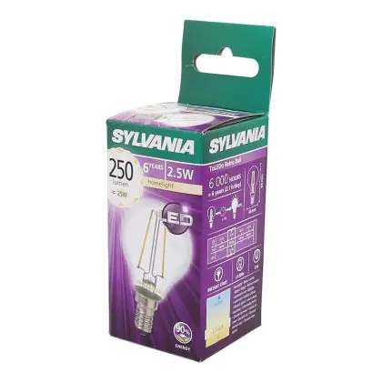 Cette ampoule Sylvania ToLEDo Retro E14 Boule Filament Claire 4W 250lm - 827 | Remplacement 40W avec son efficacité lumineuse de lumen par watt vous permettra de profiter d’un éclairage de qualité. Avec sa durée de vie de 10000 heures, vous n’aurez pas à vous soucier de son remplacement avant quelques années.