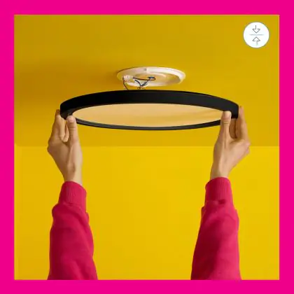 Le WiZ Smart LED Plafonnier SuperNoir 22W 2600lm - 922-950 Accordable Blanc + RGB | IP20 - Meilleur Rendu De Couleur - Wifi Dimmable peut très bien être appliqué au mur qu’au plafond. Ce hublot est un luminaire étanche principalement installé dans les lieux de passages. Avec sa technologie LED Intégré, le hublot WiZ à un faible impact sur l’environnement et à une durée de vie pouvant tenir jusqu’à 20000 heures. Ce hublot peut également être installé en extérieur et est capable de supporter des températures extrêmes. Il offre une couleur de lumière de 2200K - 6500K Tunable White et un flux lumineux de 2600 Lm.